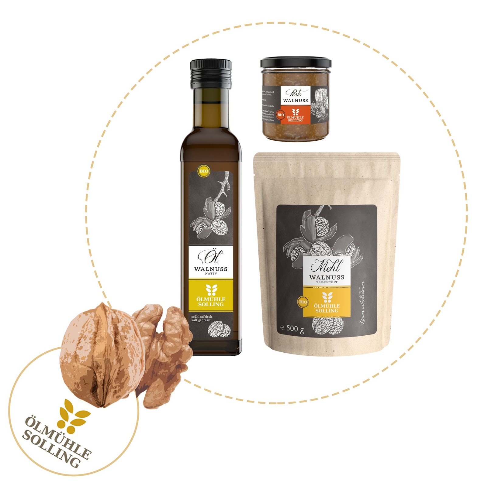 Als Gewinn gibt es ein dreiteiliges Walnussset. Das Set besteht aus Walnussöl, Walnussmehl und Walnusspesto. Bei der Ölmühle geht es noch ganz handwerklich zu. Die Öle werden in kleinen Spindelpressen hergestellt. Bei der Filtration, Abfüllung, beim Etikettieren und Versenden ist viel Handarbeit im Spiel – eine echte Manufaktur. „Klasse statt Masse“ lautet die Devise. Noch mehr tolle Öle findet ihr hier.