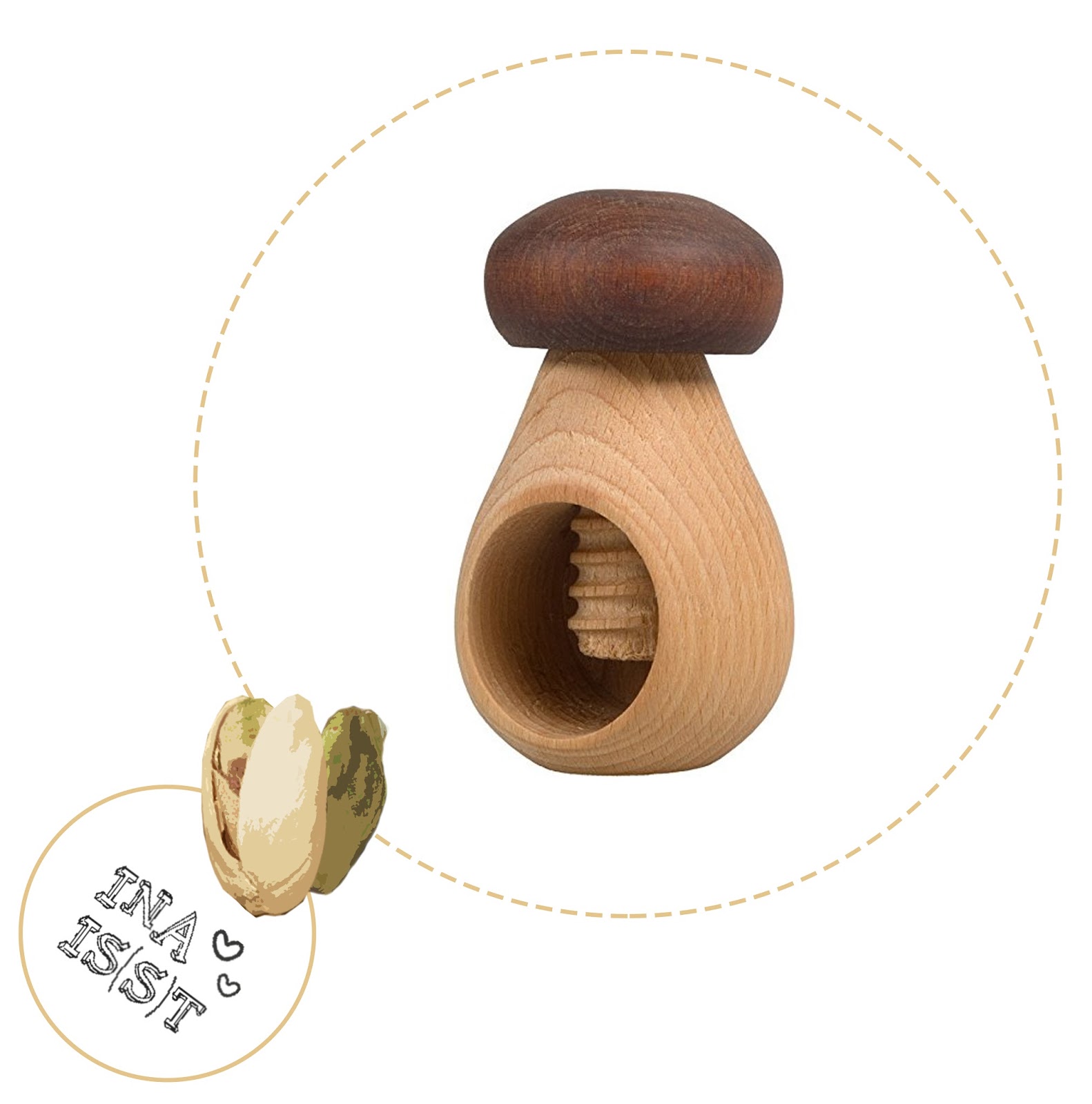 Bei diesem Event habe ich mir gedacht, dass ich auch gerne ein kleines Paket an eine/n Gewinner/in verschicken möchte. Die Auswahl des Preises fiel mir gar nicht schwer, denn was ist bei einem Nuss-Event unerlässlich? Ein Nussknacker! Diese süße Exempla, getarnt als ein Pilz, knackt mühelos eure Walnüsse. Die Nussschraube wurde aus einheimischem Buchenholz hergestellt und anschließend geölt. Neben meinem Sofa habe ich bereits eine Nussschraube stehen und freue mich schon darauf, ein Päckchen auf Reisen zu schicken.