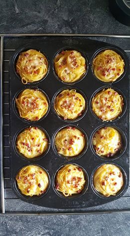 Uns schmeckt es besonders gut wenn man Toast klein schneidet, oben drauf verteilt und es kurz (~5 min.) im Backofen gratiniert.